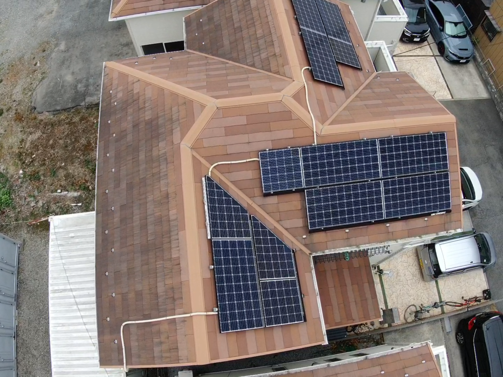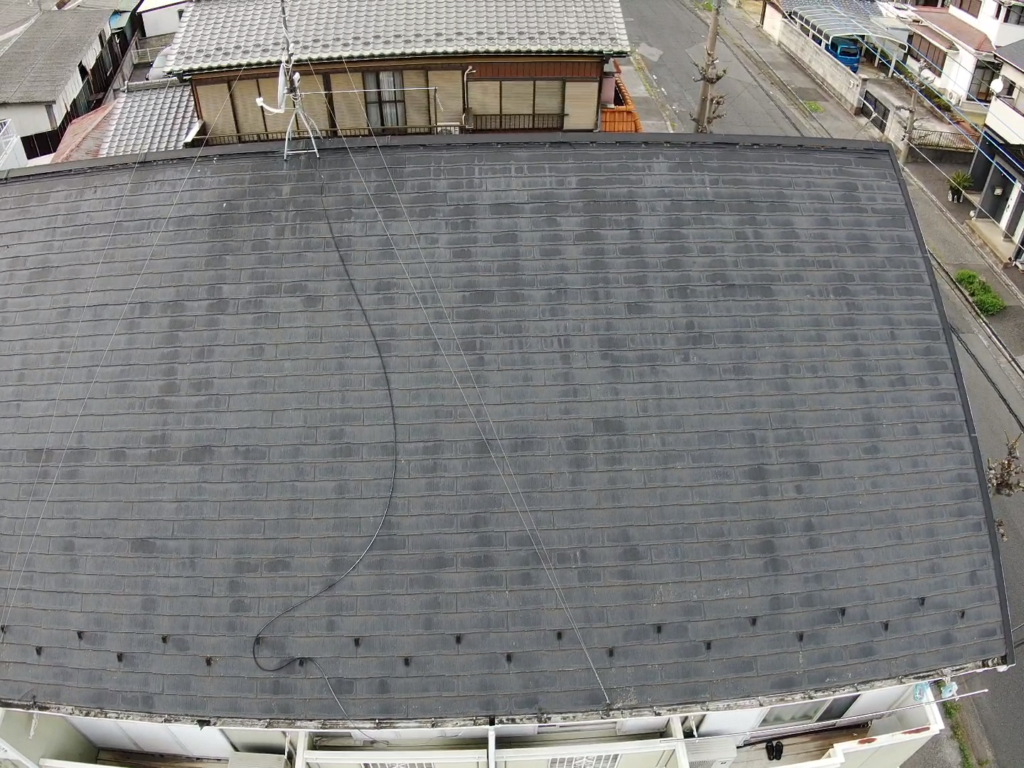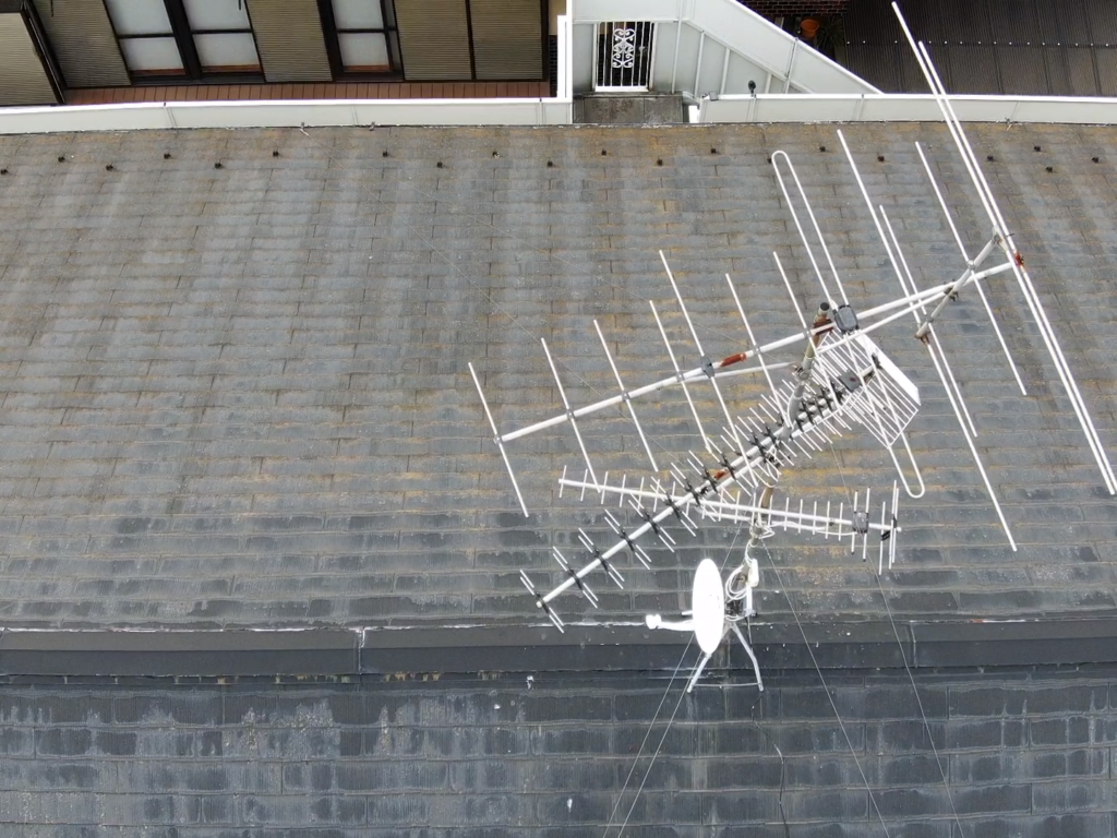 屋根の上など高所の検査はドローンで行います。