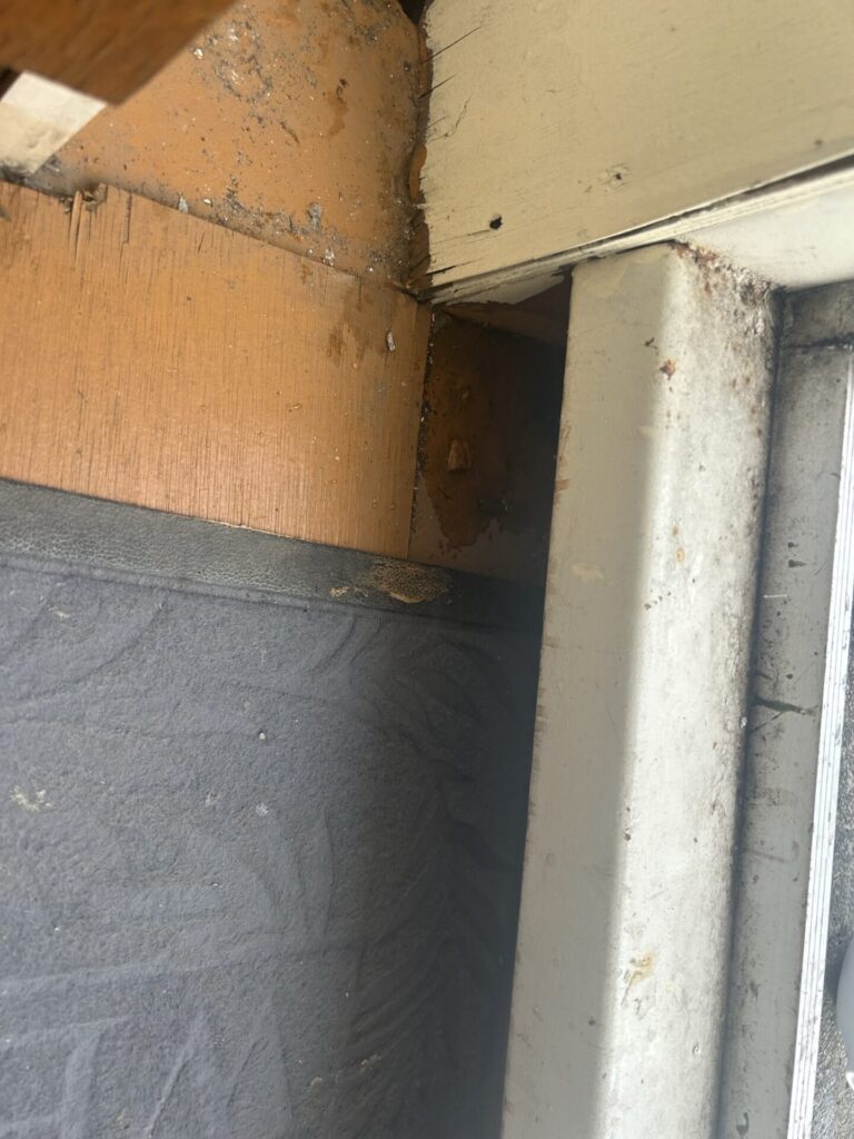 赤外線調査の結果で天井に多くの水分が滞留していることが確認出来ました。この結果から屋根にも原因があると考え、原因箇所を特定していきました。 また屋根以外にも原因箇所があり、調査報告させていただきました。 修繕工事後は赤外線でも修復されていることが、科学的にも確認出来ました。下屋根を中心に水分が滞留していることが分かりますが、サッシ周りや外壁目地からも浸入している可能性があり、調査を行いました。 複数の箇所から浸入していましたが、被害範囲は少なく修繕箇所も少量で済みました。 調査報告の後に、修繕も行い、科学的にも浸入が止まったことが判明しました。