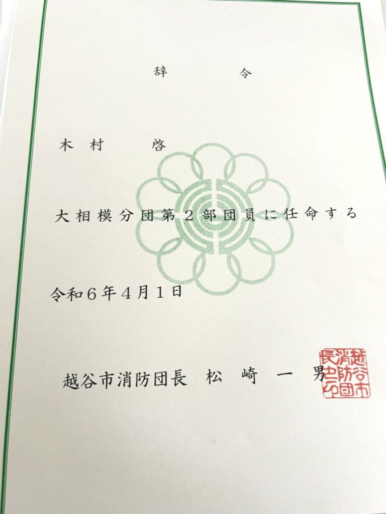異常気象で大雨や台風、放火に火事、ここ何年かでケイペイントの前のお宅に放火されたり大雨で冠水したりなど自然災害などが起きた時に消防団の活動を見て自分の住んでいる地域に災害や火事が起きた時は自分も役に立ちたい!!そんな思いで消防団に加入しました!自分たちの町は自分たちで守ります!そして入学の方はおめでとう御座います!