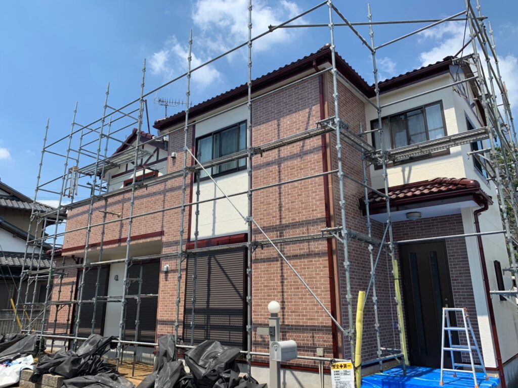 塗装完了 足場を解体前にメッシュシートを外しお客様と立ち会い確認完了後